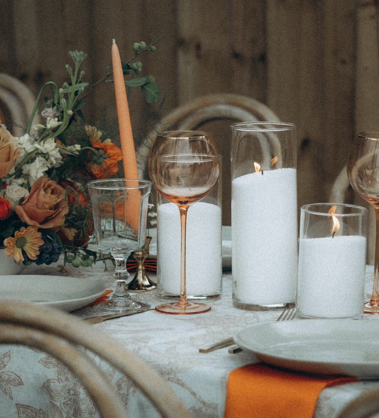 Your event deserves more than cookie-cutter decor. With our customizable scents, colors, and designs, we create a candlelit atmosphere as unique as your signature dish.